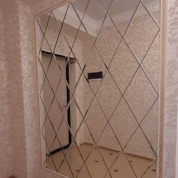 Использована зеркальная квадратная плитка с фацетом.